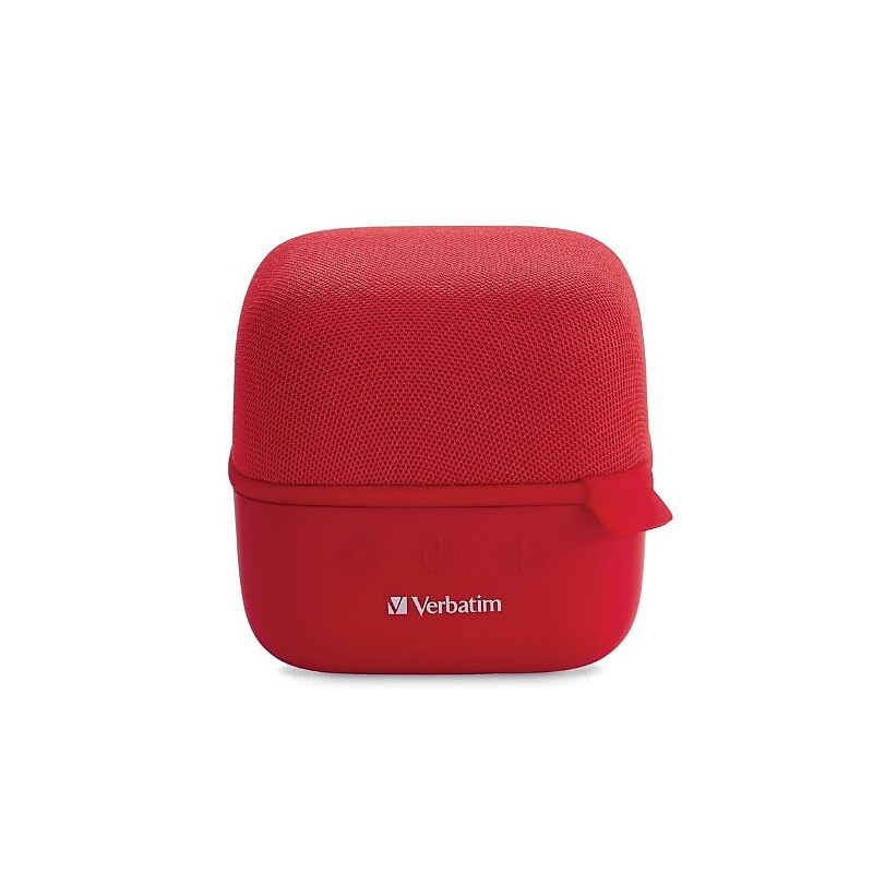 Experience powerful bass in a travel-friendly size with the Verbatim Wireless Cube Bluetooth Speaker. TWS Stereo Sound pair two speakers together. Powerful bass in a compact, travel-friendly speaker. Built-in microphone for hands-free calling. Rechargeable battery up to 5 hours of continuous playtime on a single charge. microSD card slot for MP3 playback. Convenient carrying strap. On/Off button conserves battery life when not in use. Compatible with most Bluetooth-enabled devices. Operational Range: Up to 33 Feet. Operating Time: About 5 Hours. Package Includes: Bluetooth Speaker, Charging Cable. 1-Year Limited Warranty. Pack Dimensions: 2. 95" H x 5. 31" W x 4. 13" L. Experience powerful bass in a travel-friendly size with the Verbatim Wireless Cube Bluetooth Speaker.