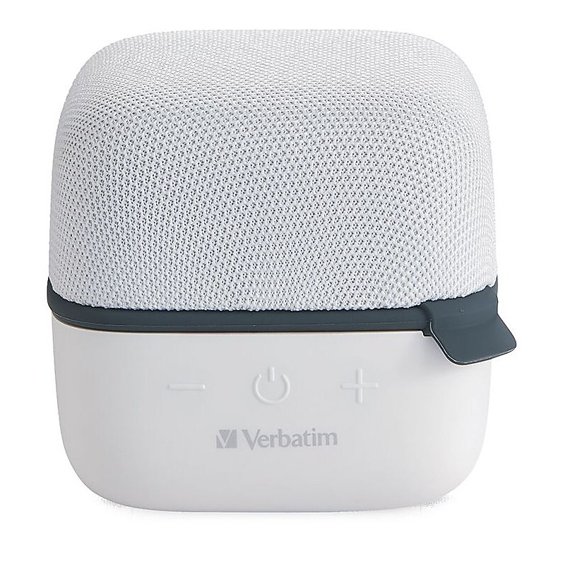 Experience powerful bass in a travel-friendly size with the Verbatim Wireless Cube Bluetooth Speaker. TWS Stereo Sound pair two speakers together. Powerful bass in a compact, travel-friendly speaker. Built-in microphone for hands-free calling. Rechargeable battery up to 5 hours of continuous playtime on a single charge. microSD card slot for MP3 playback. Convenient carrying strap. On/Off button conserves battery life when not in use. Compatible with most Bluetooth-enabled devices. Operational Range: Up to 33 Feet. Operating Time: About 5 Hours. Package Includes: Bluetooth Speaker, Charging Cable. 1-Year Limited Warranty. Pack Dimensions: 2. 95" H x 5. 31" W x 4. 13" L. Experience powerful bass in a travel-friendly size with the Verbatim Wireless Cube Bluetooth Speaker.