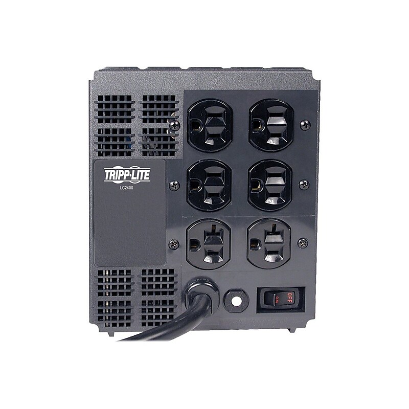 The Tripp Lite LC2400 6-outlet 2400 W 120 V power conditioner is perfect for use with computers, routers, modems, printers, home theater and more. This conditioner features an automatic voltage regulation system for correction of under and higher voltages. It offers voltage stabilization for under voltages as low as 89 V and over voltages as high as 147 V back to regulated 120 V normal power with 1440 J of surge suppression. The conditioner comes with cord, featuring LEDs on front panel for monitoring the power status. It extends the life of the equipment and keeps your equipments in working state in all conditions. Power conditioner is perfect for computers, routers, modems and home theater components. Has two NEMA 5-20R/4 x NEMA 5-15R output receptacles. Dimensions: 7"H x 6"W x 9 1/2"D, Cord length: 6'. Features durable plastic construction. Nominal input voltage: 120 VAC, Output: 2400 W. Front panel LEDs: seven LEDs show incoming voltage status, protection present and line fault conditions. Form factor: Small tower. Corrects under and overvoltages in 89V-147V range. Safeguards against spikes with 1440 J of surge suppression. Features monitors power status with front-panel diagnostic LEDs. EMI/RFI AC noise suppression: 80 dB. Comes with 2 years limited warranty.