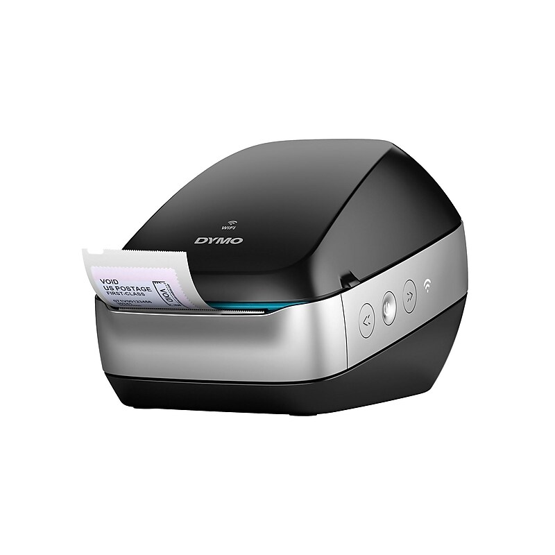 Use your smartphone, tablet, PC, or Mac to effortlessly print labels while keeping the workspace free from messy cables with this wireless label printer. DYMO LabelWriter's thermal label printer technology lets you avoid paying high costs for printer ink or toner, and it connects to your office network so everyone can print labels on demand. Label printer for customized creation and printing of labels. Prints up to 71 four-line address labels per minute. It offers printing with 600 x 300 dpi maximum resolution. Direct thermal print is not affected by sunlight or friction. USB 2. 0, Wi-Fi(a/b/g/n) for easy and flexible connectivity. USB & wireless label printer offers easy connectivityprint from virtually anywhere or share on a network. Dimensions: 4. 88"H x 5"W x 7. 95"D. 2-year manufacturer limited warranty. Print labels efficiently with this DYMO LabelWriter wireless black label printer.