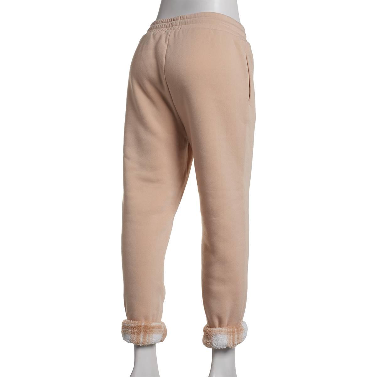 Pattern: Solid Leg Style: Ankle Boyfriend fit Drawstring waist Two functional pockets Soft sherpa lining decorated with plaid print.