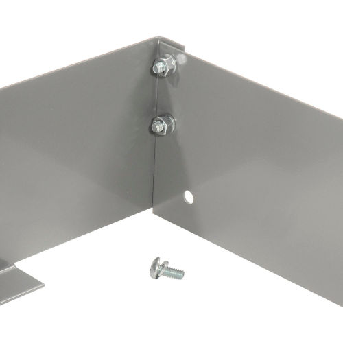 BACK AND END STOPS Extends above the top of the bench to prevent items from falling off. Steel with powder coat finish. Mounting holes for easy work bench installation.