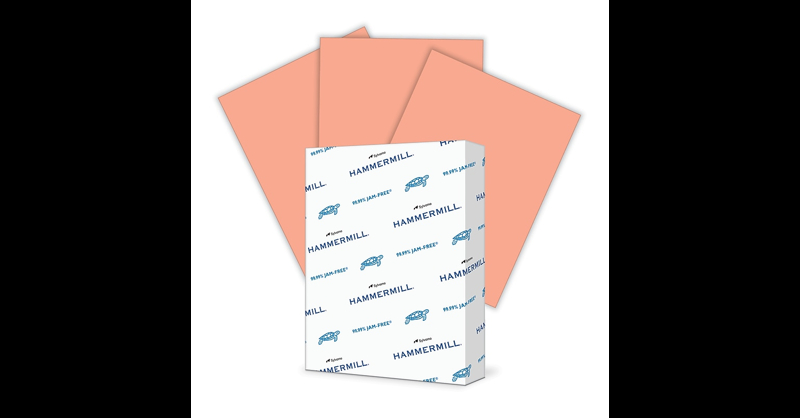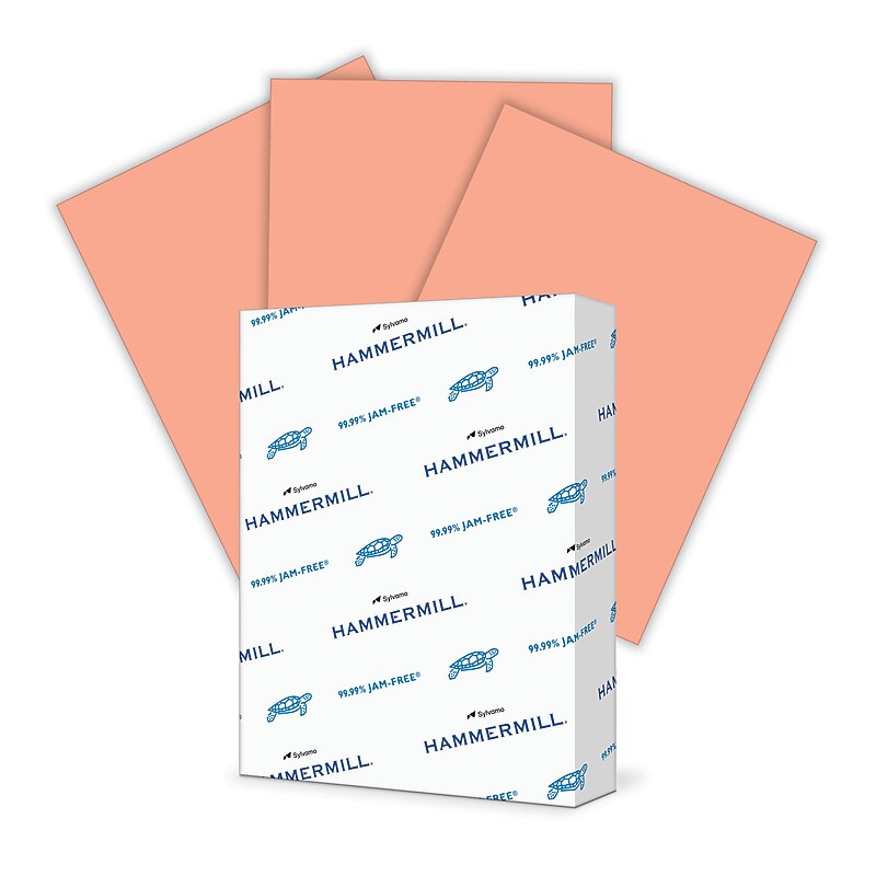Get your work noticed by using this recycledcolored paper. This acid-free paper works in all compatible printers and provides a smooth printed surface for reports, flyers, reports, newsletters, and art projects. This Hammermill recycled colored paper provides high-quality printing surfaces for any project. Salmon colored paper is ideal for direct mail, flyers, and office or school projects. Paper weight: lbs. ; 50. 8 lb. Text. Sheet dimensions: 8. 5" x 11" (US letter). Bond finish. 500 sheets per ream. Acid Free. Color: Salmon. Recycled Product Content May Vary. SFI certified. Add color to your printed projects and save the planet with this Hammermill letter-size color paper.