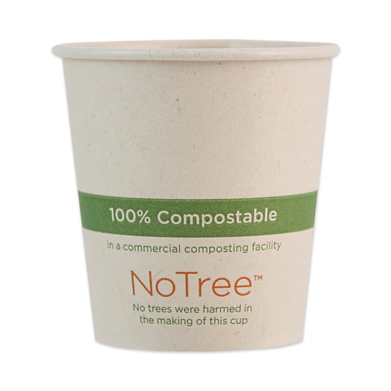 Made from rapidly renewable, unbleached sugarcane paper. No trees are used to make NoTree cups. Bio-lining made from plants creates a moisture barrier. Disposable, freezer safe, and contain no wax or plastic lining. Suitable for liquids up to 220F. Great for warm beverages like coffee, tea, and hot cocoa. 100% compostable in two to four months in a commercial composting facility. Not microwavable. Made from rapidly renewable, unbleached sugarcane paper. No trees are used to make NoTree cups. Bio-lining made from plants creates a moisture barrier. Disposable, freezer safe, and contain no wax or plastic lining. Suitable for liquids up to 220F. Great for great for warm beverages like coffee, tea, and hot cocoa. 100% compostable in two to four months in a commercial composting facility. Not microwavable.