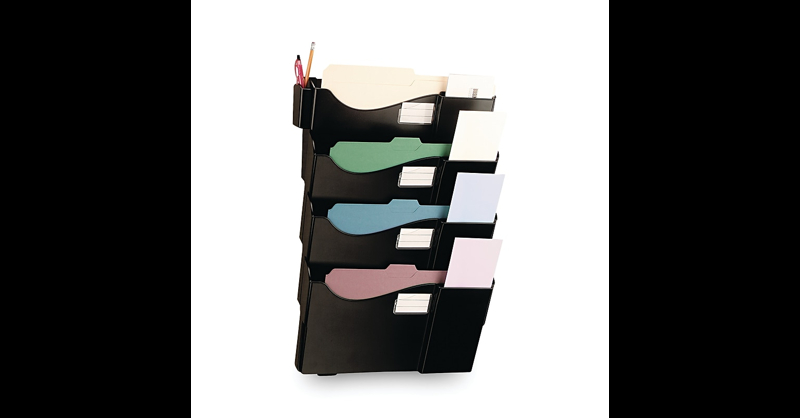 A great organizer for office, cubicle or mail room. Plastic. 23 1/2"H x 16 5/8"W x 4 3/4"D. Filing system includes a pencil cup and compartment for cards and envelopes for easy retrieval. Functional design allows for easy addition of add-on pocket.