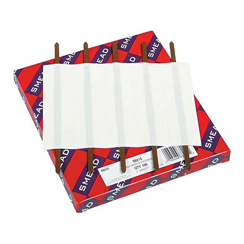 Contain document sets with these reinforced fasteners. Each tin-coated fastener features a matte finish and smooth coined edges for safe handling. Smead uses high-quality steel to manufacture these self-adhesive folder fasteners, which stand up to long-term filing needs. High-quality folder fasteners are quick and easy to use. 2" capacity ensures related documents stay together.colored and made of metal for durability. 100 per box. Self-adhesive glue on back of fasteners is easy to apply and adheres well for lasting durability. This product is manufactured by a certified WBE (women owned business). Secure documents with these Smead 2-inch-capacity self-adhesive reinforced folder fasteners designed for multiple filing purposes.