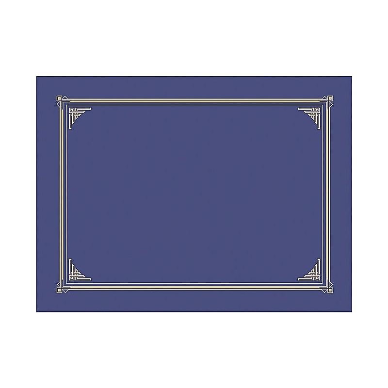 Create attractive memorabilia by inserting prized certificates in these document covers. They accommodate A4-size sheets via the die-cut slots, and the 80-pound textured design provides an elegant background. This 6-pack of metallic-blue Geographic certificate and document covers also offers alternate use as menu or photo holders. Cover for documents and award certificates. Made of 80 lb. paper stock color with gold foil stamped border. Cover size: 9. 75" 12. 5". Holds letter-size certificates. Slip the full-size certificate into the die-cut slots to create an award. Document covers are stamped with classic embossed foil border designs. Six covers per pack. 30% post-consumer recycled content. Frame and display awards and recognition with this 6-pack of Geographics metallic-blue certificate and document cover.