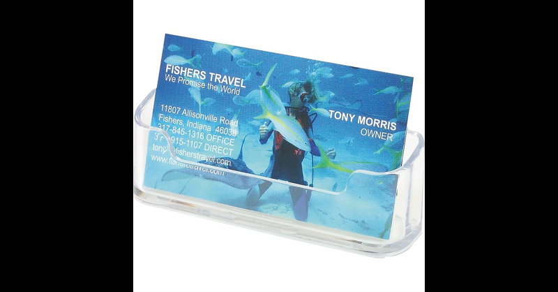 design provides full visibility. Holds up to 50 cards. Durable plastic. Use on counter or desktop. Ideal for doctors' offices, travel agencies, retail outlets.