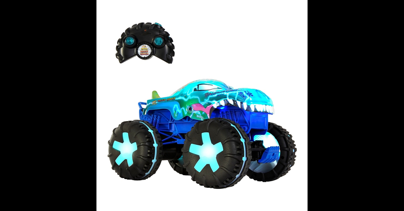The legendary Hot Wheels Monster Trucks Mega-Wrex comes alive in 1:15 scale, featuring interactive lights and sounds and three modes of play! In Hunt Mode, Mega-Wrex powers up and stalks its prey every hit activates lights and sounds. It takes on challengers with a big roar in Smasher Mode, increasing its noises and ferociousness the more it smashes. In Guard Mode, Mega-Wrex recharges with a soft glow, ready to be awakened at any moment. Every interaction has accompanying lights and sounds to inspire dynamic play and imaginative storytelling. Colors and decorations may vary. ?The Hot Wheels Monster Trucks beast Mega-Wrex comes alive in an oversized remote-control vehicle with interactive lights and sounds. ?This 1:15 scale RC truck has three different modes for multiple ways to play. ?Wake up Mega-Wrex by tapping the impact sensor. He immediately lights up and enters Hunt Mode, growling with increasing intensity the more he's tested. ?In Smasher Mode, Mega-Wrex dominates with massive tires and fierce sound effects, smashing anything in his way. Prop him on his back two wheels for RC stunting. ?Mega-Wrex recharges in Guard Mode with ambient lighting that shows he's ready to jump to action when called. ?The 1:15 scale Mega-Wrex Alive provides a unique remote-control Monster Truck experience for kids 5 years old and up.