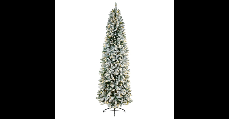Nearly Natural 8-ft Slim Flocked Montreal Fir Artificial Christmas Tree with 400 Warm White LED Lights ()