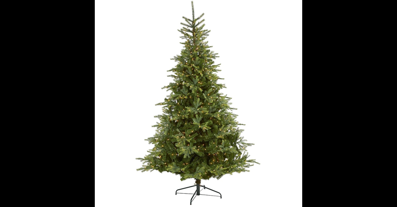 Create a picture-perfect Christmas with this artificial Christmas tree. Maintenance-free, this sparse-by-design artificial Christmas tree boasts tiers of realistic looking foliage made up of 1303 bendable branches, perfect for showcasing holiday ornaments holiday accents. Pre-strung with 650 clear lights and stabilized on a metal stand, this 8' tall artificial Christmas tree will transform any space into a joyous holiday setting for years to come. Overall Product Dimensions: 61in. W x 61in. D x 96in. H ; Measurements are from the bottom of the tree to the furthest extended branch. Width dimensions are also calculated from the furthest outstretched dimension. For indoor display only. Pre-strung with 650 clear LED lights to eliminate tangles. Contains 1303 tips for decorative ornaments. Stabilized on a metal stand. Ideal holiday decoration. Artificial trees are manufactured using synthetic materials and are well designed and constructed to be life-like in appearance. Item will need to be re-shaped when removed from the box; this tree can easily bend for reshaping purposes - please separate and fluff the branches to achieve desired fullness. Stand Dimensions: H: 7 In. W: 21 In. D: 21 In.