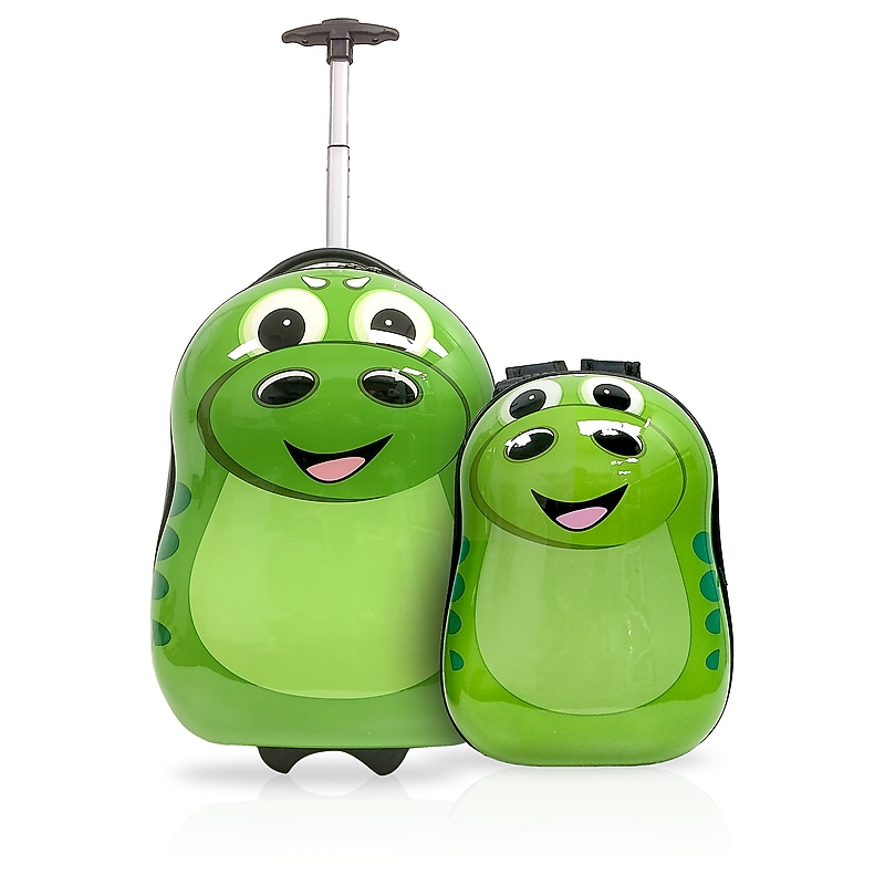 The Tucci Dinosaur Kids Luggage (T0381) is designed to make every trip a fun adventure for your little one. Featuring an adorable dinosaur theme in a vibrant green color, this suitcase will be a favorite for young explorers. Made from lightweight yet sturdy materials, its built to withstand the bumps of travel while remaining easy for kids to handle. The luggage includes smooth, 360-degree spinner wheels and a telescoping handle thats perfectly sized for children. With a spacious, organized interior, it offers plenty of room for packing clothes, toys, and essentials. The Tucci Dinosaur luggage is the ideal companion for making every journey memorable!. Designed in Italy. ABS HARDSHELL-FLEXIBLE, DURABLE & LIGHTWEIGHT. ANTI-SCRATCH RESISTANT TEXTURE. SOFT TOUCH GRIP HANDLE. GLIDE-TECH DUAL WHEEL SYSTEM. 3 YEAR LIMITED GLOBAL WARRANTY. Tucci Dinosour Kids 2pc Luggage set, Green (T0381).