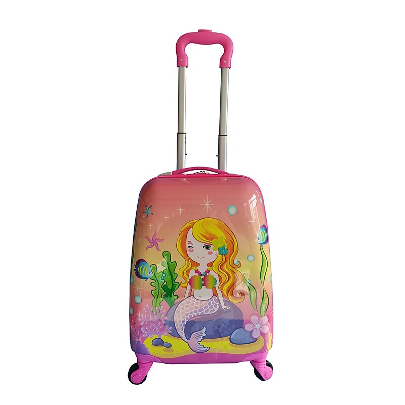The Tucci Goldymerm Kids Luggage (T0392) combines whimsy and practicality, perfect for your child's travel needs. Adorned with a delightful mermaid design and a shimmering gold accent, this luggage brings a splash of magic to every journey. Designed in Italy. ABS HARDSHELL-FLEXIBLE, DURABLE & LIGHTWEIGHT. ANTI-SCRATCH RESISTANT TEXTURE. 5 YEAR LIMITED GLOBAL WARRANTY. GLIDE-TECH DUAL WHEEL SYSTEM. Tucci Goldymerm Kids Luggage, Pink (T0392).