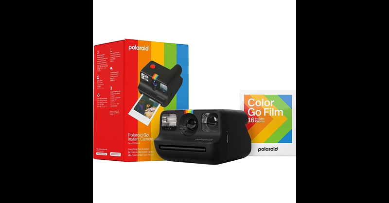 Capture real life on the Go. Our most portable, wearable, take anywhere-able Polaroid Go Generation 2 instant camera has been upgraded with a large aperture range, precise light sensor, and on-point-exposure settings to make your pictures even better. Its really small (the smallest instant camera in the world) but comes with big creative potential featuring a selfie mirror, self-timer, double exposure, and can be paired with its own teeny tiny color filters. All in the classic design, and now made with 30% recycled materials. Includes a Polaroid Color Go Film Double Pack for 16 color instant photographs with white frames. Compatible with Polaroid Go film, our smallest Polaroid instant film format. NEW FILM FORMAT: The Polaroid Go camera only takes Polaroid Go format film. It's the same Polaroid magic you know and love, only smaller. NEW & IMPROVED: Our new Go Generation 2 analog instant camera is now made with 30% recycled materials and the internal lithium-ion battery charges via USB-C. CREATE BIG, SMALLER: Portable, wearable, and take-anywhere-able. The Polaroid Go camera is your new mini partner in creativity. SELF-TIMER & SELFIE-READY: Find your light with the reflective selfie mirror, and pick your pose with plenty of time, thanks to the self-timer. Internal rechargeable battery. Includes wrist strap and USB-C charging cable. POLAROID GO MINI CAMERA and MINI FILM BUNDLE - The Polaroid GO Everything Box has everything you need to get stared. Bundle includes Polaroid GO camera and a double pack of GO color film, 16 photos.