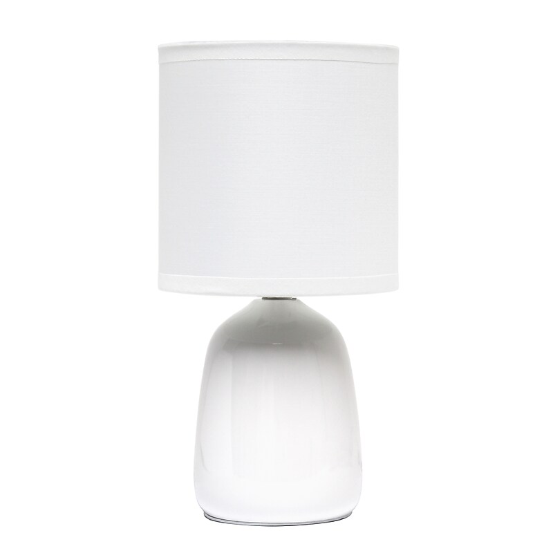 A traditionally styled table lamp base solid in the color of your choice is paired with a matching fabric drum shade. It's perfectly designed to sit on the nearest table, nightstand, college dorm or office desk. Sometimes, a timeless styled lamp is all you need for a final touch in designing your ideal space!. TRADITIONAL DESIGN: A timeless style lamp in a thimble shaped base and a matching TC fabric shade is the perfect lighting addition to your space and can compliment almost any dcor style!. ACCESSIBLE SWITCH: An easily accessible gear (rotary) switch is located on the cord of this table lamp to allow a quick and easy on/off function as needed. Lamp is also equipped with a 5 foot white plug in cord rooted at the base, perfect for spaces that need a little room between the outlet and desired location of the lamp. PRODUCT SIZE: Overall product size is L: 5. 12" x W: 5. 12" x H: 10. 04" and weighs 0. 77 lbs. The shade of this lamp measures Dia: 5. 12" x H: 5. 2". LAMP IS A MINI LAMP. ASSEMBLY & USE: Product ships assembled and will only require you to secure the lamp shade to the base using the provided socket nut prior to use. BULB REQUIREMENT SOLD SEPARATELY: This table lamp uses 1 x 40 watt equivalent type B10 E12 candelabra base bulb, which is not included in your purchase but can be easily found online or your local hardware store. ADDITIONAL OPTIONS AVAILABLE: This lamp is sold in additional colors. If this specific option doesn't perfectly match your space, make sure to check out all available options!. Simple Designs 10. 04" Tall Traditional Ceramic Thimble Base Bedside Table Desk Lamp with Matching Fabric Shade for Home Decor, Nightstand, Bedroom, Living Room, Entryway, Office.