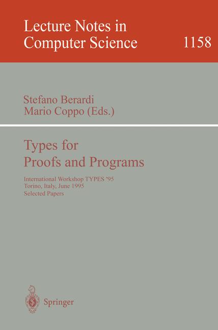 This volume contains a refereed selection of revised full papers chosen from the contributions presented during the Third Annual Workshop held under the auspices of the ESPRIT Basic Research Action 6453 Types for Proofs and Programs. The workshop took place in Torino, Italy, in June 1995. Type theory is a formalism in which theorems and proofs, specifications and programs can be represented in a uniform way. The 19 papers included in the book deal with foundations of type theory, logical frameworks, and implementations and applications; all in all they constitute a state-of-the-art survey for the area of type theory.