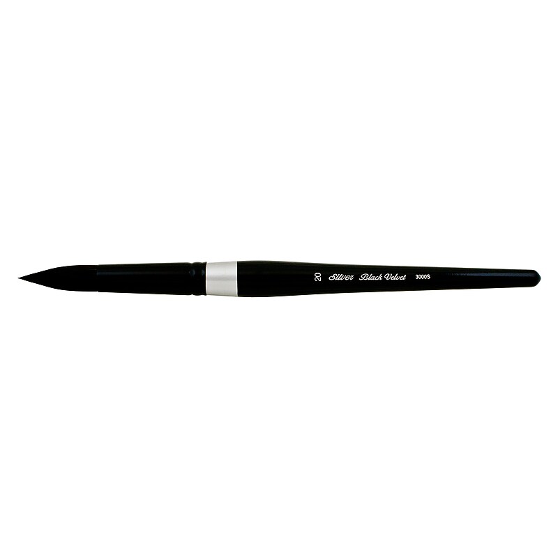 The Silver BrushVelvet brushes were created for watercolor artists and skilled hobbyists. EachVelvet brush is soft enough to add color without disturbing previous layers but firm enough to lift color when needed. Silver BrushVelvet professional watercolor brushes are expertly crafted with a luxurious blend of squirrel hair and black synthetic fibers. Each brush has a short handle that is finished with sophisticated black lacquer. TheVelvet 3000S is a multi-use, round brush. Artists prefer to use this brush for wide strokes or thin lines. It is made with an extra long tip and wide belly. The 3000S is also ideal for perfecting exact details. Silver BrushVelvet brushes are best paired with watercolor. Each brush will hold the right amount of color, giving you more time to focus on your masterpiece. Watch your ethereal creations come to life with Silver Brush premium-quality brushes. Silver BrushVelvet brushes were created for watercolor artists. EachVelvet brush is soft enough to add color without disturbing previous layers but firm enough to lift color if needed. Bristlon acrylic and oil artist brushes are expertly crafted with a luxurious synthetic blend that imitates hog bristle. 1 Brush. TheVelvet 3000S is a multi-use, round brush. Artists prefer to use this brush for wide strokes or thin lines. It is made with an extra long tip and wide belly. Silver BrushVelvet brushes are best paired with watercolor. Each brush will hold the right amount of color, giving you more time to focus on your masterpiece. Silver Brush Ltd is owned by a 4th generation art materials family and proud of Silver Brush rich heritage in bringing quality supplies to artists and craftsmen throughout the world. The Silver BrushVelvet brushes were created for watercolor artists and skilled hobbyists.