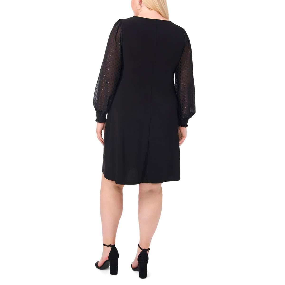 Plus Size MSK Long Clip Dot Mesh Sleeve Shift Dress