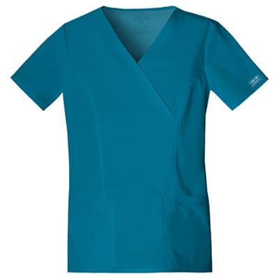 Womens Cherokee Core Stretch Mock Wrap Top - Caribbean Blue