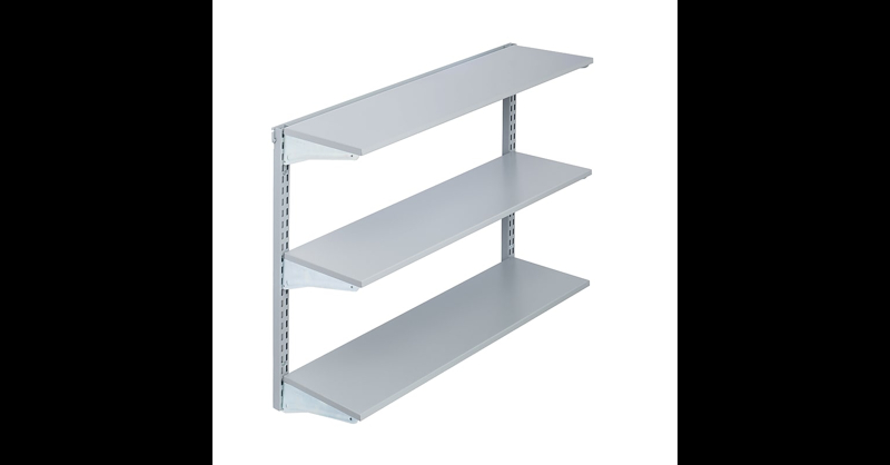 The 3 shelf system is heavy-duty and ideal to mount above the washer, dryer, workbench and more. Includes brackets and commercial mounting hardware. Wall Mount Shelving Unit. Dimensions: 33 In. W x 31. 5 In. H. Constructed of 14-gauge heavy-dutyepoxy coated steel to ensure long life. Includes all hardware required to mount the frame to the wall and the accessories to the frame. System holds up to 375 lbs. across each top track. Expandable using the 1700 Storability Series of accessories. Triton Products - Strength in Organization.