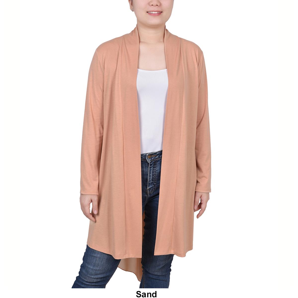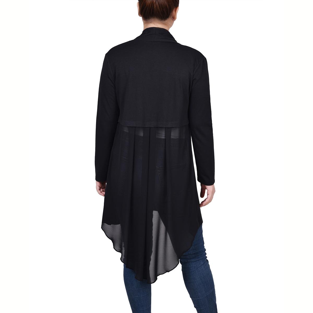 Petite NY Collection Long Sleeve Chiffon Back Jersey Cardigan