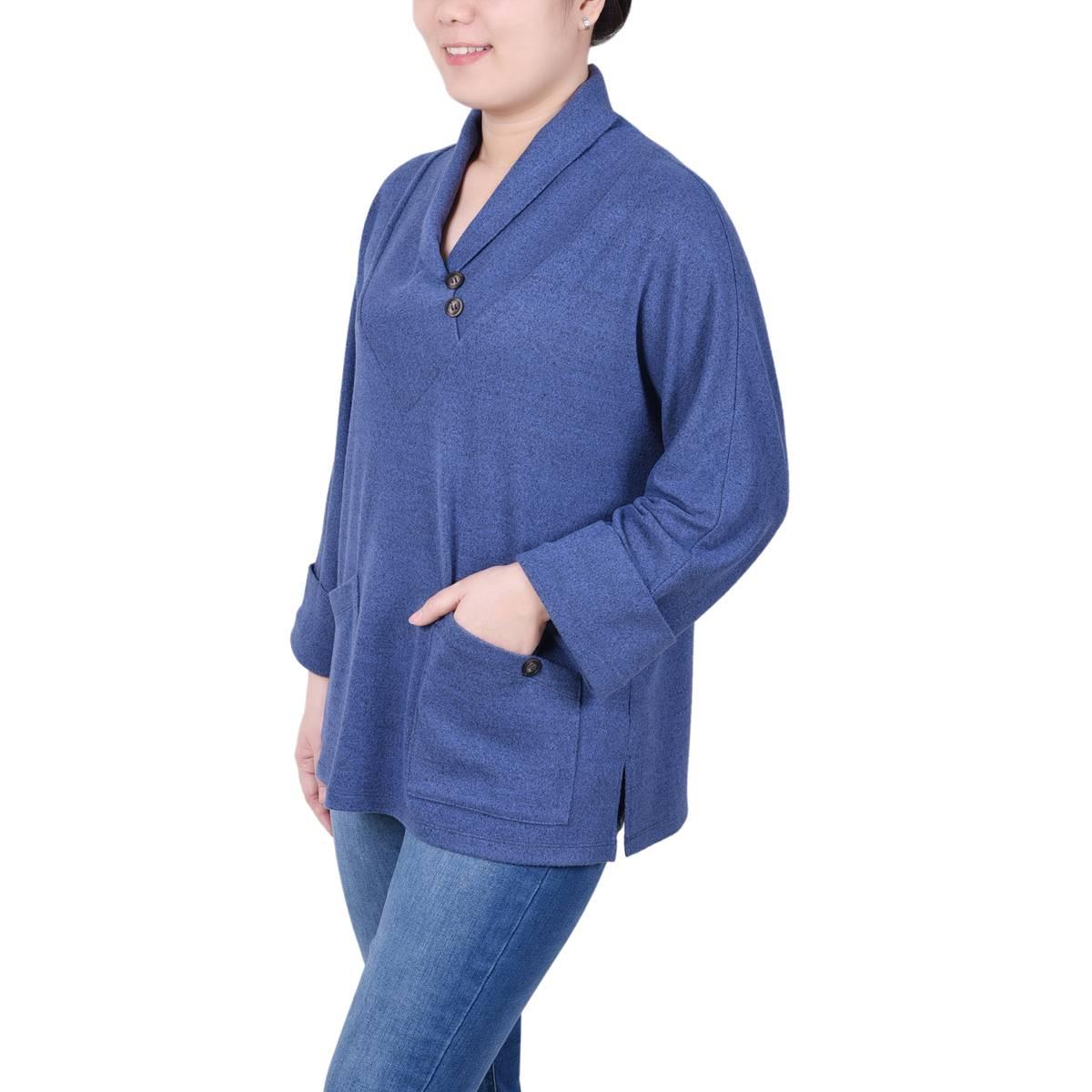 Buy Petite NY Collection Heather Hacci Drape Cowl V-Neck Blouse for $9.99 at @ Boscovs.com