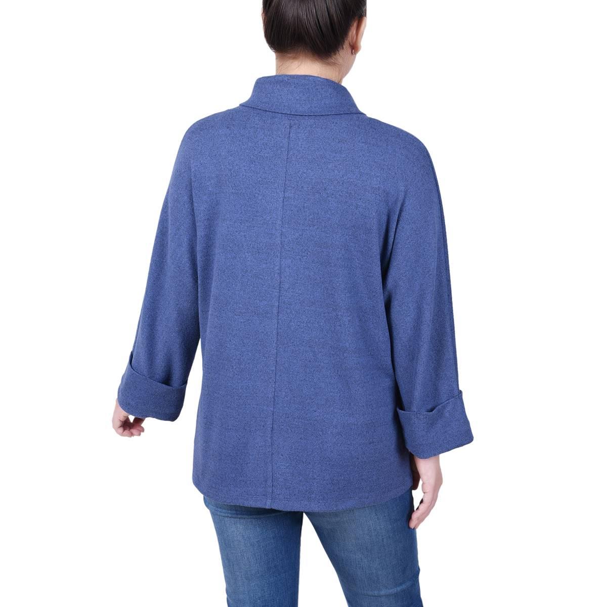 Petite NY Collection Heather Hacci Drape Cowl V-Neck Blouse