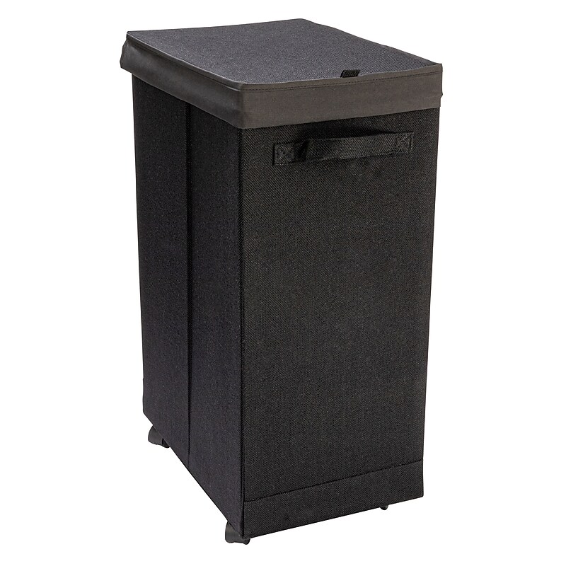 Whether it's a cozy apartment, a cramped dorm room, or a laundry area with limited space, this hamper is the perfect companion for compact spaces. When not in use, it gracefully collapses, vanishing into the background, leaving the space open and uncluttered. Crafted from a combination of durable polylinen and sturdy cardboard, this hamper is a testament to quality and longevity. The polylinen material envelops a collapsible frame, providing unwavering support while effortlessly accommodating laundry needs. The attached lid elevates both functionality and aesthetics, allowing the discreet concealment of unsightly laundry while adding a touch of elegance to the space. Effortlessly glide it from room to room with the smooth-rolling wheels, then utilize the lock feature to ensure the hamper remains in one place and wobble-free during sorting and organization. The removable liner is easily removable, and can be machine washed to restore freshness. Explore other coordinating items in the closet organization collection including the Hanging Zippered Garment Storage Bag with Clear Vision Front, Hanging Garment Shoulder Dust Covers, 4 Pocket Wide Organizer with Hang bar, and more in matching This versatile laundry hamper features a collapsible frame encased in polylinen, attached lid, a removable washable liner, and 4 rolling casters. The narrow silhouette is cleverly designed to fit into even the smallest of spaces; Can be easily collapsed when not in use. 6 attached wheels provide easy mobility from room to room; 1 wheel can be locked for stability. Made from polylinen and cardboard. Hamper measures 10" L x 15" W x 22" H. ⚠ WARNING: California Proposition 65 Warning. This product can expose you to chemicals including lead, which are known to the State of California to cause cancer and birth defects or other reproductive harm. For more information go to www. P65Warnings. ca. gov . Designed with ingenuity, this laundry hamper boasts a narrow silhouette that gracefully fits into the tightest of spaces.
