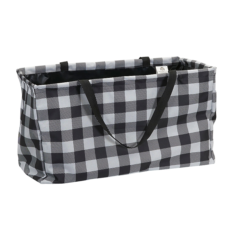 This rectangular utility tote is a simple and practical storage option with unlimited uses. The attractive and practical design allows the bag to be used for storage in your house or carrying supplies as you go about your weekly errands. This utility tote is made of durable blended canvas fabric with a vinyl lining. These high-quality materials are made to last through years of consistent use. The canvas prevents snagging, while the coating protects against water damage. Not only does this rectangular tote have a large capacity, but the soft frame can be folded down for compact storage when not in use. For added convenience, take this tote along with you on day-to-day activities or move it around the house with the use of the two long handles. This bag can be used for a variety of different activities and storage purposes. Use this in your linen closet to keep all of your towels, blankets and pillowcases together. Keep it in your car to hold emergency kit items, ponchos and umbrellas, activities and more. You can even bring it to picnics, the beach or the gym and use to hold all your necessities. With its smart design, this utility tote is the key to keeping yourself prepared and organized during your daily chores. This utility bag is ideal for anyone looking for a tote fit for any occasion. It may be especially useful for college students, apartments, or any home looking to add a bit of versatile functionality. This canvas utility tote offers a classic bag to carry and store nearly anything, whether it be groceries, blankets, hobby supplies or laundry. Made of durable canvas with a water-resistant vinyl lining and double handles. Use to store or carry a variety of different items confidently and with style. Attractive design and large capacity give this item a wide range of utility. 11"L x 22"W x 13"H.and White Plaid Krush Container All-Purpose Utility Tote.