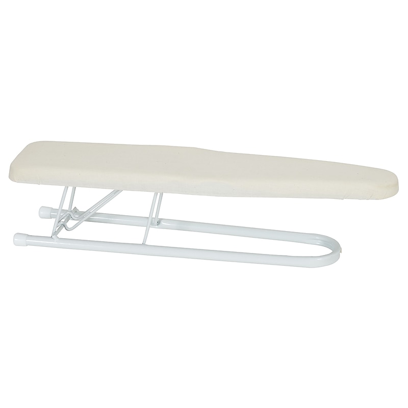 Made with high-quality materials and a compact design, this ironing board can be set up on any tabletop or counter or used in addition to a standard ironing board. The handy leg caps prevent scuffing of tabletop or counter surfaces while also keeping the board steady. The thick metal frame provides an ample amount of support as you iron. The durable perforated plastic top not only contributes to the boards stability but also encourages great ironing results by circulating heat and steam. The foam pad and100% cotton cover reduce creasing and imprints. The slim design and tapered nose make this accessory sleeve ironing board great for pressing sleeves, collars, hems and other small articles with hard to reach corners. This ironing board is extremely compact to make storage a breeze. The boards low profile and metal leg lock allows for quick set-up and take-down. Store this ironing board on a shelf, in a drawer or linen closet or other smaller storage spaces. Paired with a full-sized ironing board, this sleeve ironing board will help you achieve flawless results. This accessory would be a perfect option for any ironer, seamstress or crafter. This high-quality and compact sleeve ironing board provides you with a convenient way to press smaller and hard-to-reach angles of your clothing. The boards plastic top allows for even distribution of heat and steam. The cotton cover is scorch- and stain-resistant. Use to detail iron sleeves, collars, hems and other small articles, on its own or in conjunction with a regular ironing board. No-scuff leg caps prevent scratches on table and countertops. Set Up: 4. 5 H x 4. 5 W x 21. 9 L; Folded: 1. 5 H x 22. 25 L. ⚠ WARNING: California Proposition 65 Warning. This product can expose you to chemicals including lead, which are known to the State of California to cause cancer and birth defects or other reproductive harm. For more information go to www. P65Warnings. ca. gov . This sleeve ironing board is a wonderful, quick option for the habitual or casual ironer.