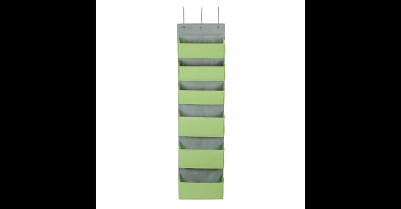 The reinforced pockets can hold up to 5 pounds each and are tapered for easy access. The pockets and backing of this organizer are made of PP non-woven fabric for superior durability. The bright lime on a gray background offers a creative pop of color to spice up any room design. Reinforced with solid bottoms and plastic side inserts, these pockets are guaranteed to hold their form and provide excellent support. To accommodate for a wide variety of items, the bottom 3 pockets are made 2 inches deeper for taller objects such as chip bags, cleaning solution bottles, spray cans and more. The 3 shallow pockets at the top are 5 inches deep and great for spices, bundles of yarn, snack bags and small boxes. This organizer hangs on 3 hooks for advanced stability and comes with 2 sets of hooks to be used on either residential or commercial doors. When not in use, this organizer can be quickly folded and tucked away for compact storage until needed again. Use this organizer to add a fun, versatile and durable storage option to any room. This over the door pocket organizer will help clear your cabinets and shelves of excess clutter for a more organized and tidy storage space. This over the door pocket organizer offers a total of 6 spacious and tapered pockets for easy grab-and-go storage and stylish organization. Made of PP non-woven pockets with reinforced siding, this organizer comes with 2 sets of hooks for both residential and commercial doors. Use this bright lime organizer to sort and store various items in the pantry, bedroom, hobby room or bathroom. This flexible yet durable organizer has a 5 lb. capacity for each pocket and can be folded down for compact storage. H W 7" D. ⚠ WARNING: California Proposition 65 Warning. This product can expose you to chemicals including lead, which are known to the State of California to cause cancer and birth defects or other reproductive harm. For more information go to www. P65Warnings. ca. gov . This over the door pocket organizer uses space behind the bedroom, bathroom or pantry door as a compact storage option for sorting toiletries, office supplies, accessories and more.