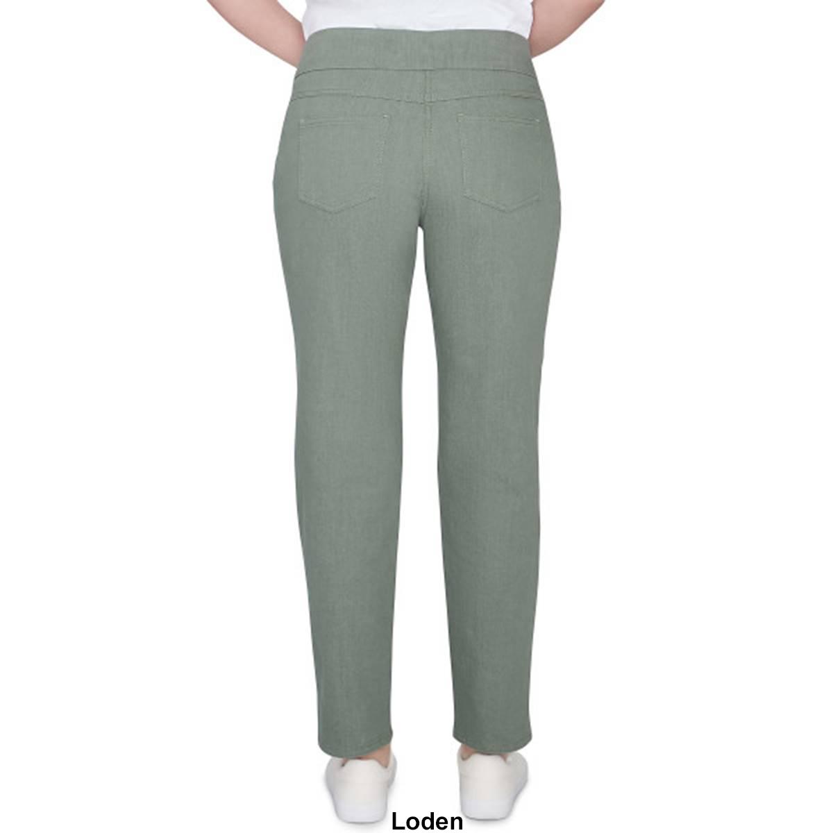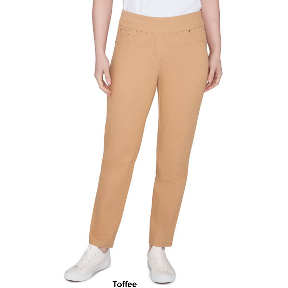 Collection: Key Items Pattern: Solid Leg Style: Skinny, Ankle Rise: High-Rise Fit: Slim Fit Wide contouring elastic waistband Built-in tummy control Pull-on styling Faux pockets Low iron.