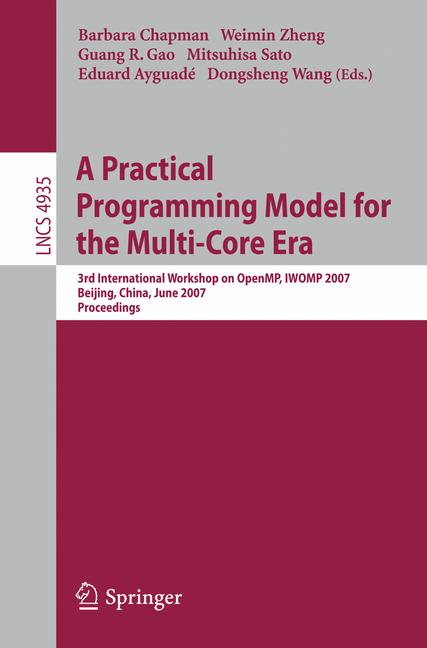 The Third International Workshop on OpenMP, IWOMP 2007, was held at Beijing,China.This yearsworkshopcontinuedits traditionofbeingthe premier opportunity to learn more about OpenMP, to obtain practical experience and to interact with OpenMP users and developers. The workshop also served as a forum for presenting insights gained by practical experience, as well as research ideas and results related to OpenMP. A total of 28 submissions were received in response to a call for papers. Each submissionwasevaluatedbythreereviewersandadditionalreviewswerereceived for some papers. Based on the feedback received, 22 papers were accepted for inclusion in the proceedings. Of the 22 papers, 14 were accepted as full papers. We also accepted eight short papers, for each of which there was an opportunity to givea shortpresentationat the workshop,followed byposter demonstrations. Each paper was judged according to its originality, innovation, readability, and relevance to the expected audience. Due to the limited scope and time of the workshop and the high number of submissions received, only 50% of the total submissions were able to be included in the ?nal program. In addition to the contributed papers, the IWOMP 2007 program featured several keynote and banquet speakers: Trevor Mudge, Randy Brown, and Shah, Sanjiv. These speakers were selected due to their signi?cant contributions and reputation in the ?eld. A tutorial session and labs were also associated with IWOMP 2007.