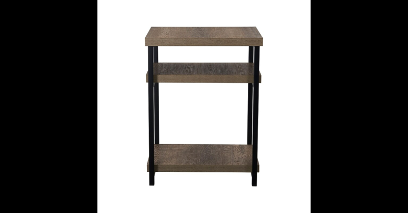 This Household Essentials Jamestown slim side table with storage makes it easy to add organization and beauty to any space in your home. With a clean, minimalist design and a small profile, this side table fits in almost anywhere. Use it as a side or end table next to furniture, or even as an entryway console in a small or narrow entryway or hallway. This side table is made of steel and quality engineered wood with a woodgrain laminate, giving it the look and feel of a solid wood side table while still being durable and much lighter than real wood. The laminate surface is much easier to clean than real wood: just wipe it down with a damp cloth. The mixture of the warm faux woodgrain and cool black metal frame is modern and stylish, but still classic enough to mesh with a variety of different textures and decor. Though this side table is slim, it still offers two storage shelves, so you have plenty of space to house whatever items you need to. Use the shelves to store books and magazines, small storage baskets, decorative items and more. Comes ready to assemble and is easy to put together. This rectangular table can be used as an end table or side table in your living room or a bedside nightstand in the bedroom. Dimensions: 23. 6"H x 17. 9"W x 17. 5"D. Features durable steel legs and frame in black, paired with a quality engineered wood top finished in a scratch-resistantwoodgrain laminate. Offers two lower storage shelves to help keep your belongings organized. Comes ready to assemble and is easy to put together (some tools are provided). Rustic, slightly distressed,finish with its subtle gray undertones can push the style into farmhouse or even western styles, depending on what accessories you pair the table with. Easy to clean: simply wipe the surface of the table with a damp cloth. Featuring a calm color, this coffee table pairs well with any preexisting room layout, making it a great choice for those struggling to find matching furniture pieces.