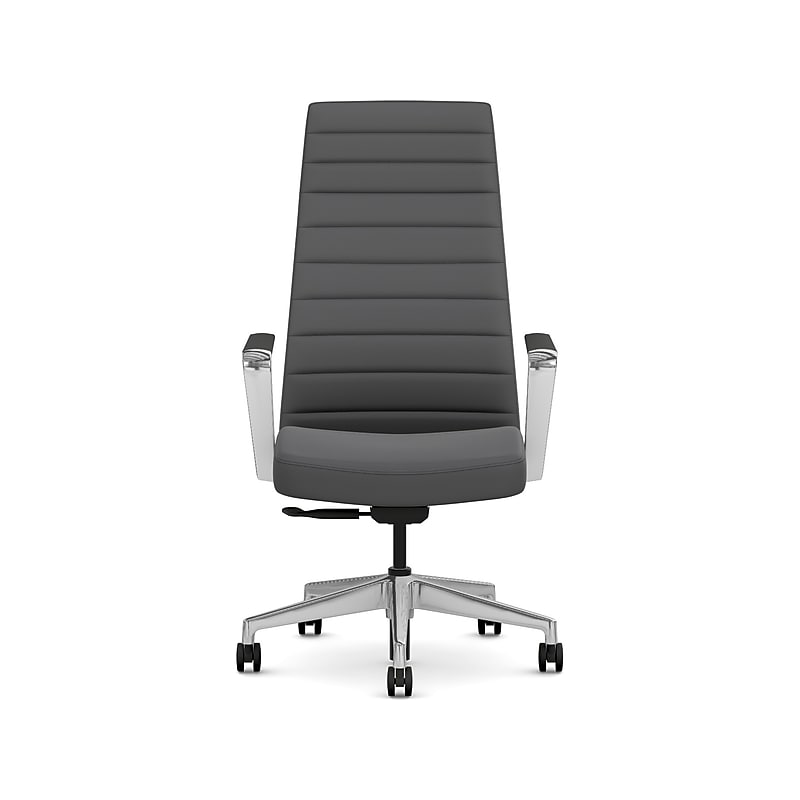 You never get a second chance to make a first impression, so why not make a memorable one with Cofi? This sophisticated seating solution from HON features a refined design, detailed stitching, and premium materials for a remarkably elevated feel. Whether you're calling the shots in a private office or presiding over a board meeting in a conference room, Cofi makes it easy to represent your company's image. Luxurious and stylish, this high-back executive chair can be used anywhere. Contourettgray fabric upholstery with black stitching, and polished aluminum arms and base. Overall dimensions: 43. 25"-48. 5"H x 26"W x 26. 63"D. Seat dimensions: 15. 75"-20. 75"H x 20. 5"W x 16. 75"D. Weight-activated synchro-tilt mechanism automatically adjusts tension as you recline, eliminating the need to make adjustments for different users. Rated for up to 300 lbs. Full assembly required. To adjust the ease of recline, turn the front knob clockwise to tighten the tilt tension and counter-clockwise to loosen. Lifetime limited warranty; 12-year warranty on seating controls. Model Option: HCFEU. W0. STC. P. H. UR19. CHSTC04. PA.