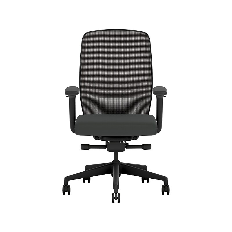 There's an art to smart seating, and the Nucleus task chair from HON has it down to a science. With a deep-cushion hammock seat designed for even weight distribution, breathable four-way stretch mesh back, and easily adjustable lumbar support, the Nucleus task chair is great for anyone who demands intuitive performance, all-day comfort, and outstanding support. Make your space work with HON Nucleus. This attractive and comfortable task chair delivers sleek style to any office or collaborative environment. Four-way stretch mesh back Contourett black fabric seat, and black frame. Give your back a break with intuitive adjustable lumbar support. Overall dimensions: 42. 75"H x 29"W x 29"D. Seat dimensions: 16. 25"-20. 13"H x 18. 75"W x 18"D. Back dimensions: 24"H x 18. 63"W. Height- and width-adjustable arms provide a custom fit. Rated for up to 300 lbs. Full assembly required. Meets or exceeds the BIFMA standards. Advanced synchro-tilt mechanism puts you in total control of your recline and comfort. Hard casters roll quietly and effortlessly. Stay cool and comfortable with the breathable four-way stretch mesh back that cradles every pressure point. Tilt tension controls the rate and ease of recline. 360-degree swivel provides freedom of movement in any direction. Pneumatic seat height adjustment moves the seat up and down to adapt to various body heights. Lifetime limited warranty; 12-year warranty on four-way stretch mesh and seating controls. Model Option: HNR1KD. Y2. STC. A. H. IM. UR10. BL. SB. T.