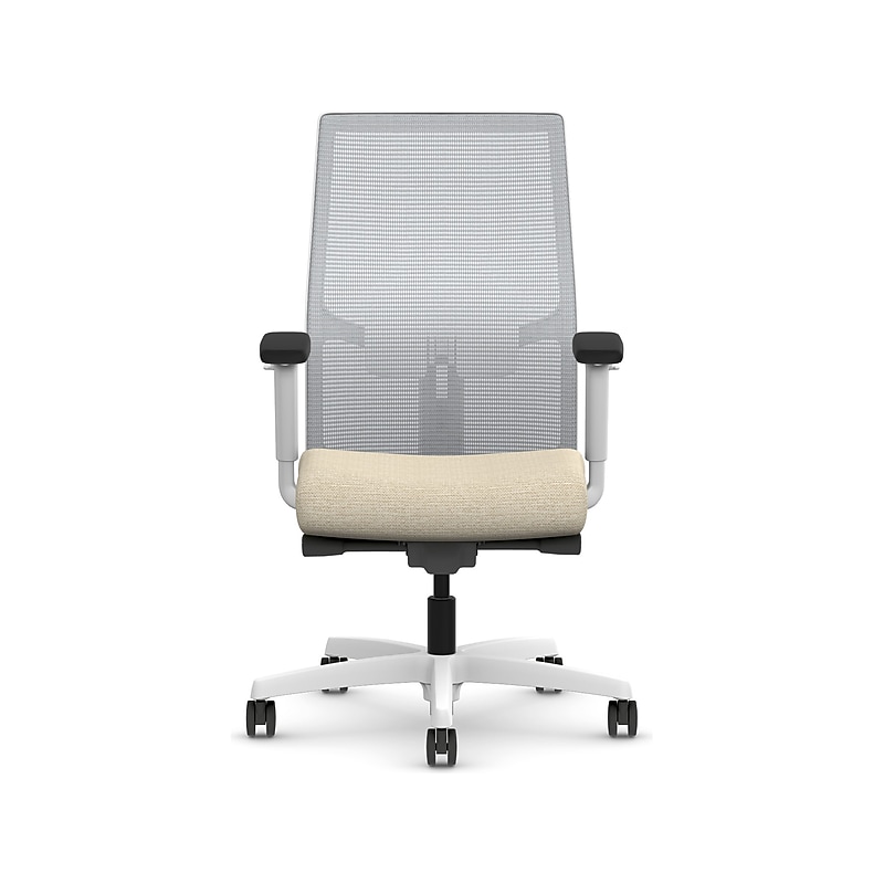 People come in all sorts of shapes and sizes, so why choose an office chair that's one-size-fits-all? It doesn't matter if you're big or small, the Ignition 2. 0 task chair by HON is designed to fit your body, your environment, your style, and the way you get things done with customized adjustability and remarkable intuition. Make your space work with Ignition 2. 0. Task chair is a smart addition to any office space. Four-way stretch mesh back in fog gray, Hamiltonbeige fabric seat, and designer white frame. Lumbar support adjusts for your lower back comfort. Overall dimensions: 43. 75"H x 27"W x 24"D. Seat dimensions: 20"W x 19"D. Back dimensions: 19"W. Height- and width-adjustable arms provide a custom fit. Rated for up to 300 lbs. Full assembly required. Meets or exceeds the BIFMA standards. Advanced synchro-tilt mechanism puts you in total control of your recline and comfort. Hard casters roll quietly and effortlessly. Breathable four-way stretch mesh back increases airflow and enhances support. Contoured seat cushion gives workstation warriors the all-day comfort they need. Tilt tension controls the rate and ease of recline. Upright tilt lock secures the chair in the many upright positions. 360-degree swivel provides freedom of movement in any direction. Pneumatic seat height adjustment moves the seat up and down to adapt to various body heights. Lifetime manufacturer limited warranty; 12-year warranty on four-way stretch mesh and seating controls. Model Option: HIWMMKD. Y2. A. H. IF. HAML11. DW. SB. DWX.
