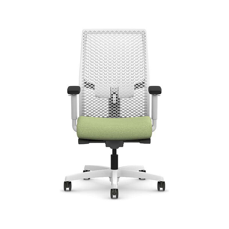 People come in all sorts of shapes and sizes, so why choose an office chair that's one-size-fits-all? It doesn't matter if you're big or small, the Ignition 2. 0 task chair by HON is designed to fit your body, your environment, your style, and the way you get things done with customized adjustability and remarkable intuition. Make your space work with Ignition 2. 0. Mid-back task chair is a smart addition to any office space. ReActiv back in designer white, Hamiltongreen fabric seat, and designer white frame. Lumbar support adjusts for your lower back comfort. Overall dimensions: 43. 75"H x 27"W x 24"D. Seat dimensions: 20"W x 19"D. Back dimensions: 19"W. Height- and width-adjustable arms provide a custom fit. Rated for up to 300 lbs. Full assembly required. Meets or exceeds the BIFMA standards. Advanced synchro-tilt mechanism puts you in total control of your recline and comfort. Hard casters roll quietly and effortlessly. ReActiv back features zonal comfort that delivers optimal support and flexibility. Contoured seat cushion gives workstation warriors the all-day comfort they need. Tilt tension controls the rate and ease of recline. Upright tilt lock secures the chair in the many upright positions. 360-degree swivel provides freedom of movement in any direction. Pneumatic seat height adjustment moves the seat up and down to adapt to various body heights. Lifetime limited warranty; 12-year warranty on seating controls. Model Option: HIWMRAKD. Y2. A. H. DWR. HAML04. DW. SB. DWX.