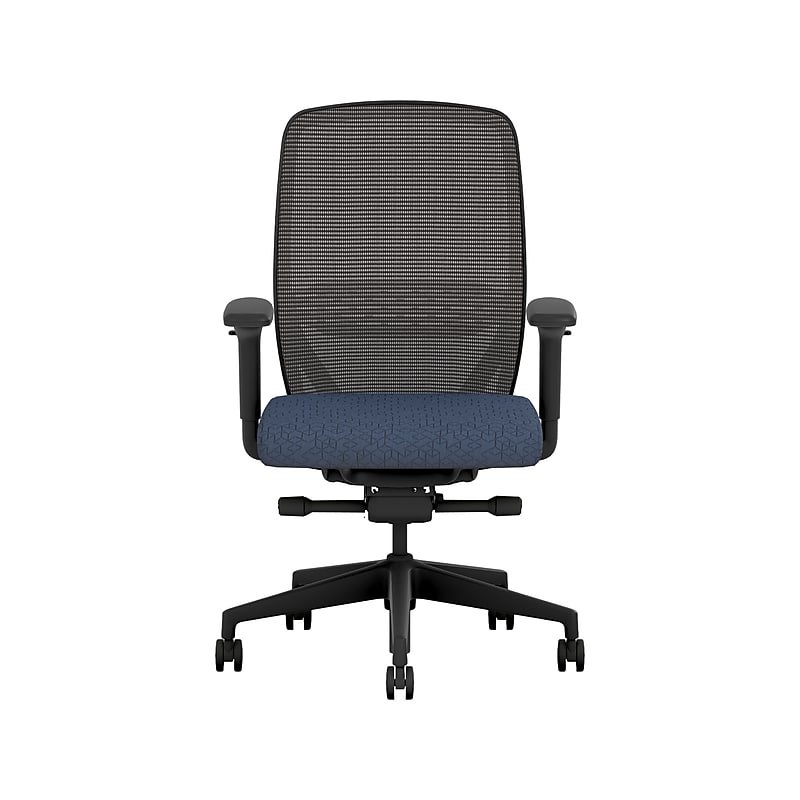 There's an art to smart seating, and the Nucleus task chair from HON has it down to a science. With a deep-cushion hammock seat designed for even weight distribution, breathable four-way stretch mesh back, and easily adjustable lumbar support, the Nucleus task chair is great for anyone who demands intuitive performance, all-day comfort, and outstanding support. Make your space work with HON Nucleus. This attractive and comfortable task chair delivers sleek style to any office or collaborative environment. Four-way stretch mesh back in black, Apexfabric seat, and black frame. Give your back a break with intuitive adjustable lumbar support. Overall dimensions: 42. 75"H x 29"W x 29"D. Seat dimensions: 16. 25"-20. 13"H x 18. 75"W x 18"D. Back dimensions: 24"H x 18. 63"W. Height- and width-adjustable arms provide a custom fit. Rated for up to 300 lbs. Full assembly required. Meets or exceeds the BIFMA standards. Advanced synchro-tilt mechanism puts you in total control of your recline and comfort. Hard casters roll quietly and effortlessly. Stay cool and comfortable with the breathable four-way stretch mesh back that cradles every pressure point. Tilt tension controls the rate and ease of recline. 360-degree swivel provides freedom of movement in any direction. Pneumatic seat height adjustment moves the seat up and down to adapt to various body heights. Lifetime limited warranty; 12-year warranty on four-way stretch mesh and seating controls. Model Option: HNR1KD. Y2. STC. A. H. IM. APX13. BL. SB. T.
