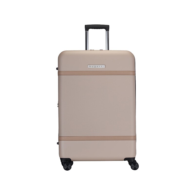 Discover the hardside luggage from the Bugatti Wellington collection. Made of lightweight ABS with vegan leather trims, this piece is built to last. The suitcase features a telescopic trolley handle that locks in two different positions and eight 360-degree spinner wheels for precise control and smooth, quiet rolling. Expandable and secure, this luggage features robust double zippers and a TSA combination lock. The inside includes a dividing panel, three tightening straps, and various pockets for optimized packing that remains in place during your trip. Perfect for all adventures. Made of lightweight ABS plastic with vegan leather trims. Features a telescopic trolley handle lockable in two different positions and reinforced top and side handles for high solidity. Overall dimensions: 30"H x 20"W x 12. 25"D (plus 2" expansion). Interior is lined, with a dividing panel, practical pockets, and tightening straps, which helps keep your belongings organized and in place during transit. Zipper-release expansion system allows for 20% more packing space, ensuring that you have enough room to pack everything you need for your trip. Eight 360-degree spinner wheels offer precise control and smooth, quiet rolling. Rigid feet protect the shell from shock. Built-in TSA combination lock provides an extra layer of security to your belongings during travel. TSA lock allows authorized personnel to open the suitcase for inspection without damaging the lock or the suitcase itself. Weight: 10. 58 lbs. Lifetime manufacturer limited warranty. ⚠ WARNING: California Proposition 65 Warning. This product can expose you to chemicals including lead, which are known to the State of California to cause cancer and birth defects or other reproductive harm. For more information go to www. P65Warnings. ca. gov.
