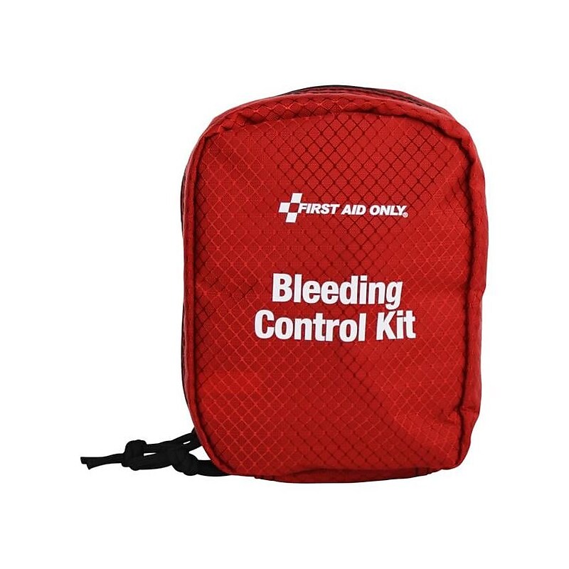 Use this First Aid Only specially designed bleeding control kit to meet California Regulation AB2260, which states all newly built buildings must contain a bleeding control kit. The highly visible fabric pouch is a premium solution to keep new buildings in California up to compliance standards. Includes all required components for the AB2260 regulation standard. Specially designed bleeding control kit for use in emergency situations. Seven-piece kit comes in a zippered fabric pouch with hook-and-loop backing. Includes: windlass tourniquet, pair of bandage shears, Hema-Seal trauma dressing, marker, pair of nitrile exam gloves, and Stop the Bleed instructional booklet. Pouch dimensions: 7. 5"H x 5. 5"W x 2. 5"D. Included windlass tourniquet may be used to quickly restrict blood flow on limbs and extremities. Meets California Regulation AB2260.