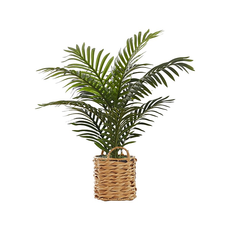 The Monarch Specialties Inc. artificial indoor palm plant is a perfect addition to bring some warmth into a space. At 24" tall, the palm offers a realistic look and feel with its 11 palm leaves that are adjustable to fan out as you like. This indoor faux palm features real-touch aesthetics, nestled in a natural-looking woven basket container, bringing a touch of instant greenery to a room. The high-quality materials are durable for long-lasting use and require no maintenance or watering for an environmentally friendly option. This artificial palm is perfect for those who want a beautiful accent for the home or office, without the fuss or mess. Add an eye-catching burst of greenery to any space with this artificial palm. 11 real-touch, adjustable lushpalm leaves add a tropical touch and realistic feel. Overall dimensions: 24"H x 23"W x 25"D. Intended for indoor use. Set in a 6"Dia. brown woven basket. This easy-care potted faux floor plant is made of high-quality materials and requires no maintenance or watering. Makes a sustainable, environmentally friendly decorative accent that will last a lifetime. No assembly required. 5-year manufacturer limited warranty. ⚠ WARNING: California Proposition 65 Warning. This product can expose you to chemicals including lead, which are known to the State of California to cause cancer and birth defects or other reproductive harm. For more information go to www. P65Warnings. ca. gov.