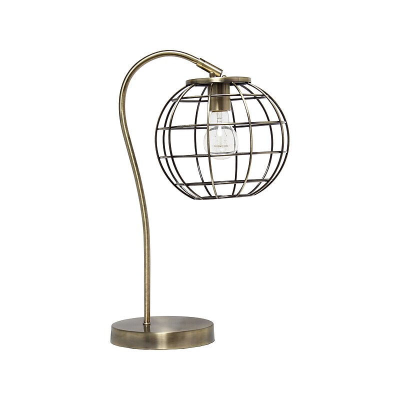 Illuminate your living space with this Lalia Home Studio Loft retro industrial table lamp, which features a beautiful polishedfinish and an attractive round metal cage shade. Standing 20" tall, this lamp is a perfect piece to accent your office, bedroom, foyer, or living room. This industrial-style arched table lamp is a perfect piece to accent your office, bedroom, foyer, or living room. Requires one 60W equivalent medium-base Type-A bulb (not included); for a complete industrial look, a decorative Edison bulb is recommended (not included). Dimensions: 20"H x 9. 25"W x 11. 5"D. Features a beautiful round metal cage shade and comes in a beautiful polishedfinish. Features a 5' black plug-in cord. Equipped with an easily accessible on/off switch on the cord. Meets or exceeds the UL standard. 1-year manufacturer limited warranty.