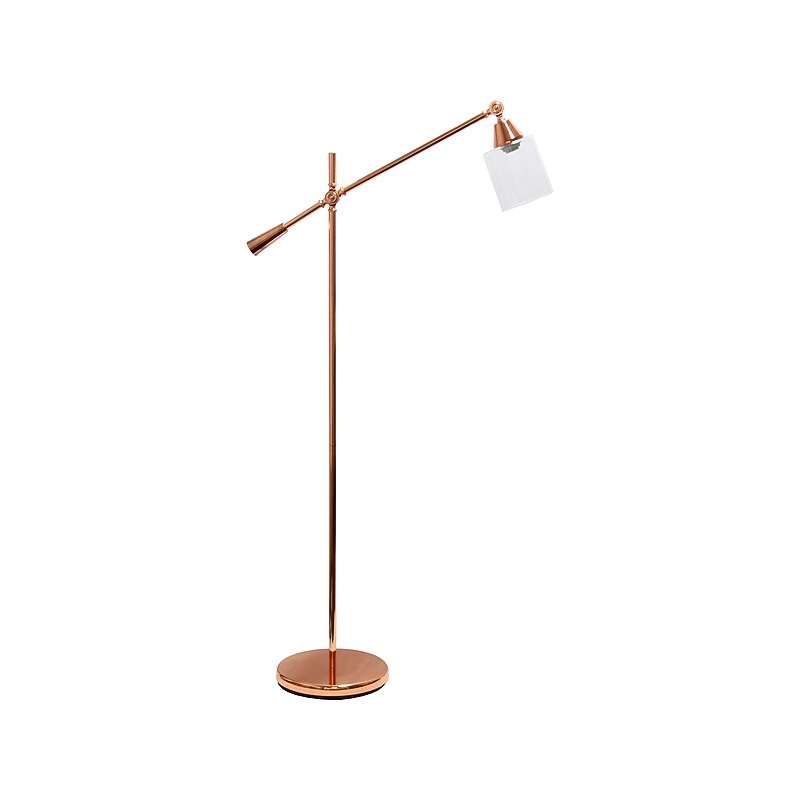 Light up your space in style with the Lalia Home Studio Loft industrial floor lamp. With its clean lines, polishedfinish, and a cylindrical clear glass shade, this lamp adds a sophisticated touch to any room in your home. Features a lever-style adjustable arm with hand twist lock to suit your lighting needs. Perfect for your foyer, office, bedroom or living room. Light up your space in style with this industrial floor lamp. Requires a 60W equivalent medium-base Type-A bulb (not included); for a full vintage look, a T45 Edison bulb is recommended. Dimensions: 55. 5"H x 11"W x 26"D. Made of metal in a polishedfinish. Includes a cylindrical clear glass shade. Comes with a 70" clear cord. Features a lever-style adjustable arm with hand twist lock. Meets or exceeds the UL standard. 1-year manufacturer limited warranty.