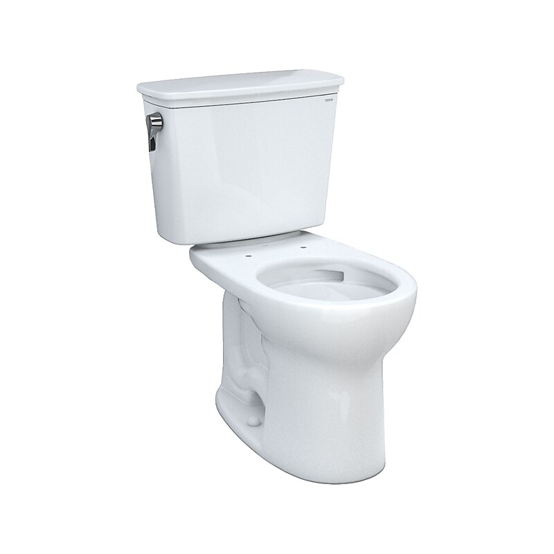 This Toto Drake two-piece toilet features a quiet advantage of the powerful, water-saving TORNADO FLUSH technology. The TORNADO FLUSH system features two powerful nozzles that create a centrifugal, cyclonic rinsing action which reduces waste buildup and keeps the bowl cleaner. CEFIONTECT ceramic glaze minimizes waste from sticking to porous ceramic surfaces. Easy to install. Universal height. Two-piece toilet consisting of a round front bowl and a tank couples well with any bathroom decor. Covered in CEFIONTECT ceramic glaze in cotton color. High-efficiency TORNADO FLUSH system features two powerful nozzles that create a centrifugal, cyclonic rinsing action which reduces waste buildup and keeps the bowl cleaner; water use: 1. 28 gpf. Dimensions: 30. 69"H x 19. 13"W x 26. 38"D. Nominal rough-in distance: 12" (supply line is sold separately). Features a chrome-plated trip lever on the left. Easy to install, floor mount toilet. Modern hole-free rim design performs more consistently and is easy to clean. Extraordinarily smooth CEFIONTECT glaze prevents debris and mold from sticking to the toilet's surface. Toilet's universal height makes the bathroom more accessible and enjoyable for everyone. Seat is sold separately. ADA compliant for residential or hospitality use. Meets or exceeds the ASME A112. 19. 2/CSA B45. 1 standards. 1-year manufacturer limited warranty. ⚠ WARNING: California Proposition 65 Warning. This product can expose you to chemicals including lead, which are known to the State of California to cause cancer and birth defects or other reproductive harm. For more information go to www. P65Warnings. ca. gov.
