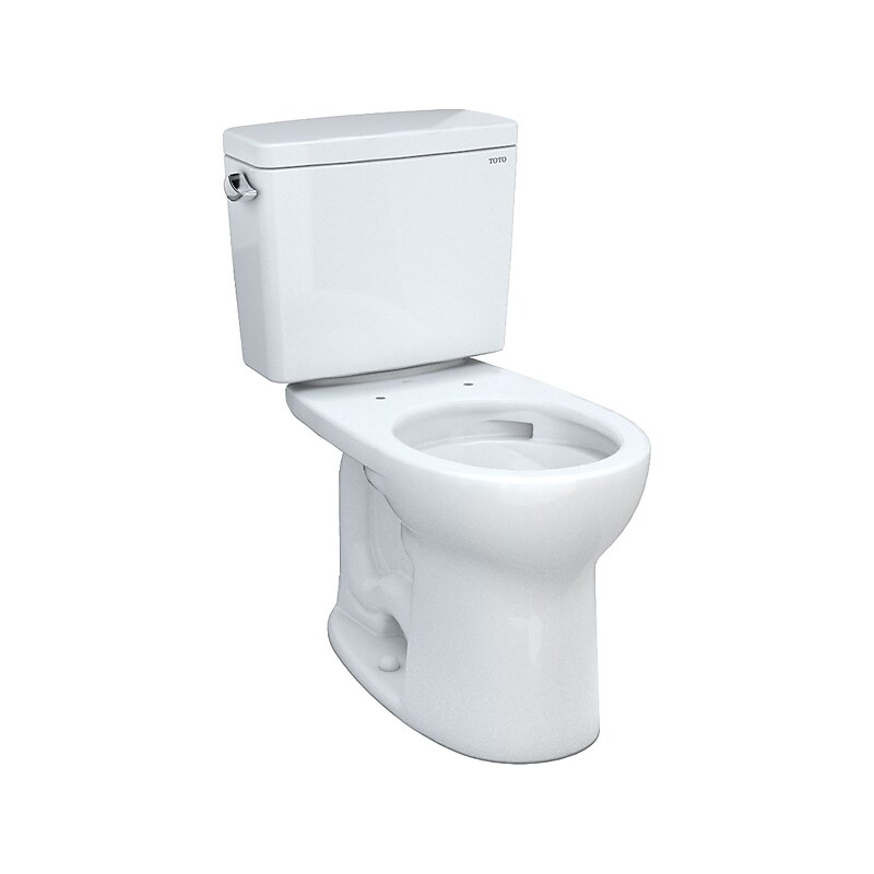This Toto Drake two-piece toilet features a quiet advantage of the powerful, water-saving TORNADO FLUSH technology. The TORNADO FLUSH system features two powerful nozzles that create a centrifugal, cyclonic rinsing action which reduces waste buildup and keeps the bowl cleaner. CEFIONTECT ceramic glaze minimizes waste from sticking to porous ceramic surfaces. Easy to install. Universal height. Two-piece toilet consisting of a round front bowl and a tank couples well with any bathroom decor. Covered in CEFIONTECT ceramic glaze in cotton color. High-efficiency TORNADO FLUSH system features two powerful nozzles that create a centrifugal, cyclonic rinsing action which reduces waste buildup and keeps the bowl cleaner; water use: 1. 28 gpf. Dimensions: 30. 13"H x 17. 19"W x 26. 38"D; 12" rough-in (supply line is sold separately). Easy-to-install floor-mount toilet. Features a chrome-plated trip lever on the left. Modern hole-free rim design performs more consistently and is easy to clean. Extraordinarily smooth CEFIONTECT glaze prevents debris and mold from sticking to the toilet's surface. Toilet's universal height makes the bathroom more accessible and enjoyable for everyone. Seat is sold separately. ADA compliant for residential or hospitality use. Meets or exceeds the ASME A112. 19. 2/CSA B45. 1 standards. 1-year manufacturer limited warranty. ⚠ WARNING: California Proposition 65 Warning. This product can expose you to chemicals including lead, which are known to the State of California to cause cancer and birth defects or other reproductive harm. For more information go to www. P65Warnings. ca. gov.