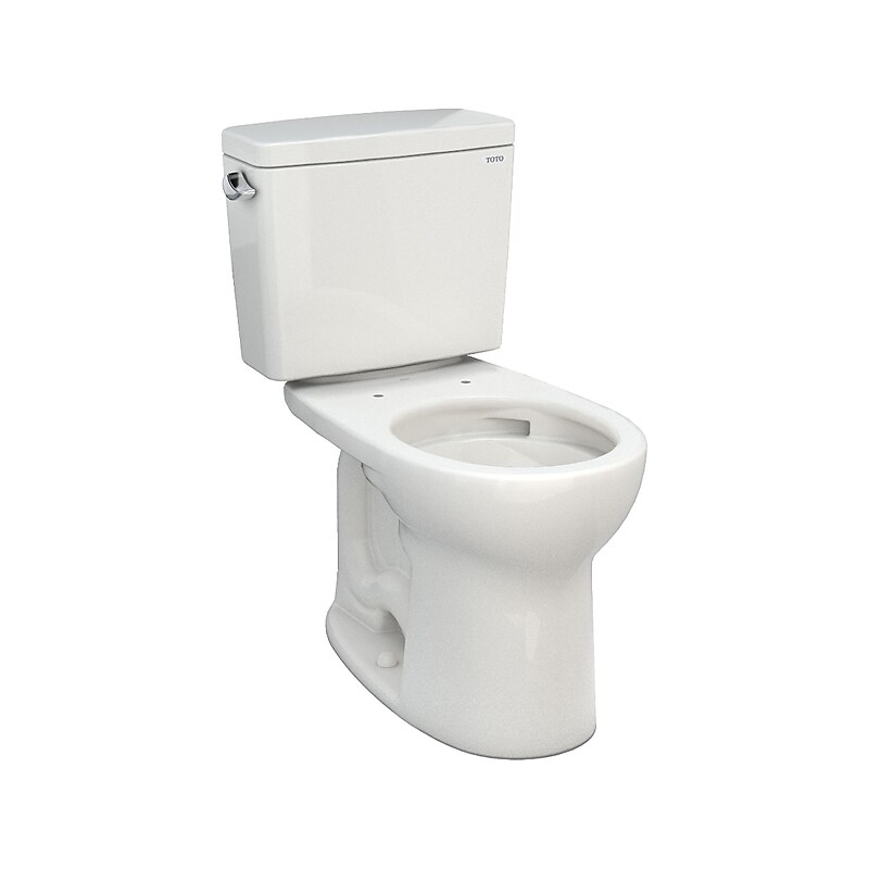 This Toto Drake two-piece toilet features a quiet advantage of the powerful, water-saving TORNADO FLUSH technology. The TORNADO FLUSH system features two powerful nozzles that create a centrifugal, cyclonic rinsing action which reduces waste buildup and keeps the bowl cleaner. CEFIONTECT ceramic glaze minimizes waste from sticking to porous ceramic surfaces. Easy to install. Universal height. Two-piece toilet consisting of a round front bowl and a tank couples well with any bathroom decor. Covered in CEFIONTECT ceramic glaze High-efficiency TORNADO FLUSH system features two powerful nozzles that create a centrifugal, cyclonic rinsing action which reduces waste buildup and keeps the bowl cleaner; water use: 1. 28 gpf. Dimensions: 30. 13"H x 17. 19"W x 26. 38"D; 12" rough-in (supply line is sold separately). Easy-to-install floor-mount toilet. Features a chrome-plated trip lever on the left. Modern hole-free rim design performs more consistently and is easy to clean. Extraordinarily smooth CEFIONTECT glaze prevents debris and mold from sticking to the toilet's surface. Toilet's universal height makes the bathroom more accessible and enjoyable for everyone. Seat is sold separately. ADA compliant for residential or hospitality use. Meets or exceeds the ASME A112. 19. 2/CSA B45. 1 standards. 1-year manufacturer limited warranty. ⚠ WARNING: California Proposition 65 Warning. This product can expose you to chemicals including lead, which are known to the State of California to cause cancer and birth defects or other reproductive harm. For more information go to www. P65Warnings. ca. gov.