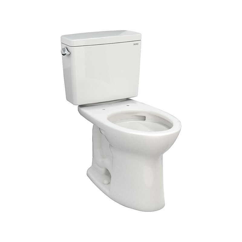 This Toto Drake two-piece toilet features a quiet advantage of the powerful, water-saving TORNADO FLUSH technology. The TORNADO FLUSH system features two powerful nozzles that create a centrifugal, cyclonic rinsing action which reduces waste buildup and keeps the bowl cleaner. CEFIONTECT ceramic glaze minimizes waste from sticking to porous ceramic surfaces. Easy to install. Two-piece toilet consisting of an elongated front bowl and a tank couples well with any bathroom decor. Covered in CEFIONTECT ceramic glaze High-efficiency TORNADO FLUSH system features two powerful nozzles that create a centrifugal, cyclonic rinsing action which reduces waste buildup and keeps the bowl cleaner; water use: 1. 28 gpf. Dimensions: 29"H x 17. 19"W x 28. 31"D; 12" rough-in (supply line is sold separately). Easy-to-install floor-mount toilet. Features a chrome-plated trip lever on the left. Modern hole-free rim design performs more consistently and is easy to clean. Extraordinarily smooth CEFIONTECT glaze prevents debris and mold from sticking to the toilet's surface. Seat is sold separately. Meets or exceeds the ASME A112. 19. 2/CSA B45. 1 standards. 1-year manufacturer limited warranty. ⚠ WARNING: California Proposition 65 Warning. This product can expose you to chemicals including lead, which are known to the State of California to cause cancer and birth defects or other reproductive harm. For more information go to www. P65Warnings. ca. gov.