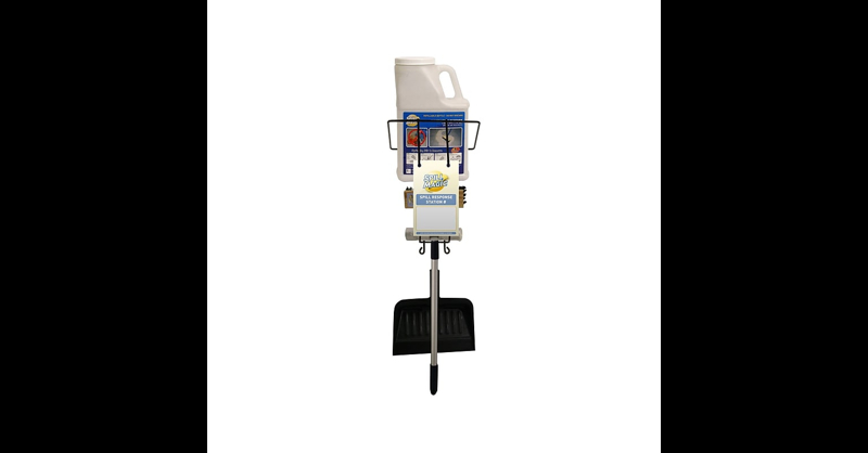 The First Aid Only Spill Magic mountable wire rack spill response station holds everything needed to quickly respond to a spill. The system includes a broom with 40" telescoping handle, clip-on dustpan, trash liner roll, and a Spill Magic absorbent bottle. Spill response station holds all necessary items to quickly clean up spills and prevent slip and fall instances. Mounts to a wall or pole for easy access to spill cleanup materials in any location. Includes a location identification card with bilingual instructions. Save time and money responding to spills with this kit. Kit contains: wire rack, broom head, clip-on dustpan, 40" telescopic broom handle, 50 trash liner rolls, 3 lb. filled absorbent powder bottle.